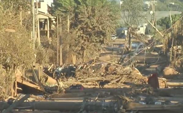 A terça-feira (7) sem chuvas fez com que a água baixasse no Vale do Taquari, revelando um cenário de devastação na região, uma das mais atingidas pelas enchentes no Rio Grande do Sul. Bairros inteiros foram destruídos e ficaram tomados por lixo, escombros e troncos de árvores. Muitos moradores perambulam pelas ruas sem saber o que fazer.
